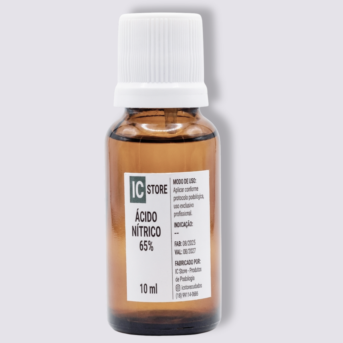 O Ácido Nítrico 65% é um agente químico de alta potência, amplamente utilizado na podologia profissional em procedimentos que exigem ação cauterizante, antimicrobiana e queratolítica, sempre com aplicação precisa e controlada.