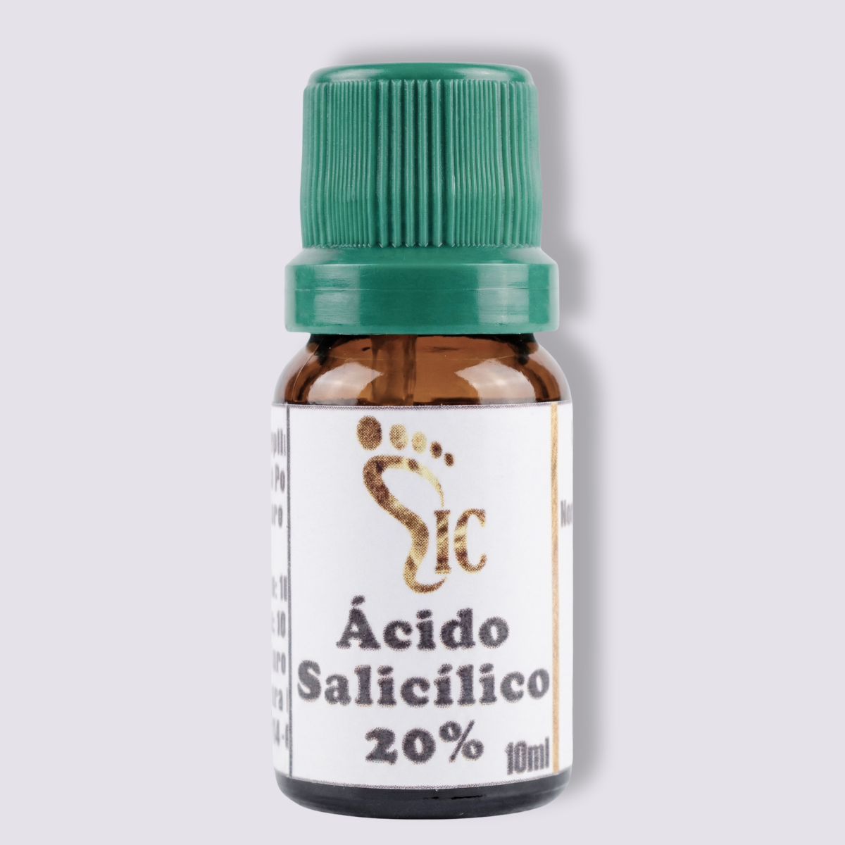 O Ácido Salicílico 20% é um agente químico de ação queratolítica intensa, amplamente utilizado na podologia profissional para o tratamento de alterações da pele e das unhas que apresentam espessamento, hiperqueratose e proliferação fúngica.