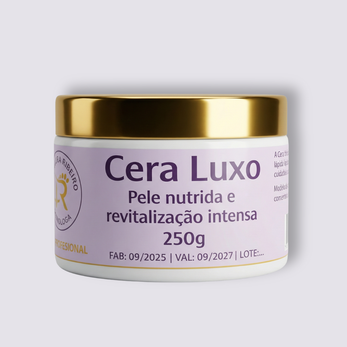 A Cera Luxo é uma cera profissional de finalização, desenvolvida especialmente para tratamentos de rachaduras, fissuras e plástica dos pés. Com parafina fina e óleo de semente de uva, sua fórmula combina hidratação profunda, nutrição, regeneração e proteção, garantindo pele restaurada, macia e saudável após o procedimento.