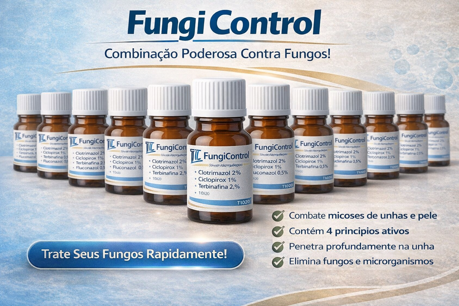 O Fungi Control é uma solução antifúngica de amplo espectro, desenvolvida com uma combinação estratégica de ativos potentes que atuam diretamente no combate às micoses de unhas e pele.